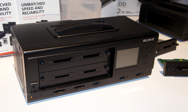 最大6枚までのメモリーカードをPCを介さずに短時間でバックアップが可能な高速コピーユニット。インターフェースはPCIe Gen3に対応しており、1TBのコンテンツを約15分でコピー可能だとしている。SDスロット(UHS-II対応)のほかSxSやXQD、CFastなどの交換式カードスロットを交換することで各種メッセージに対応可能。