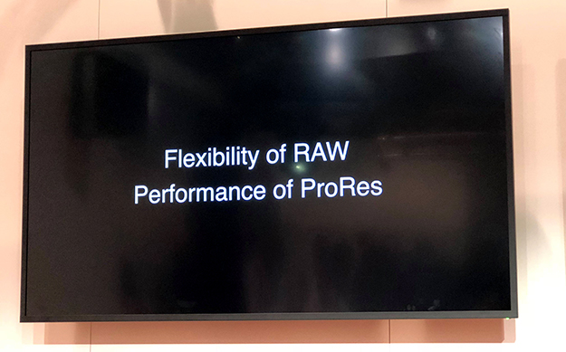 NABで話題のProRes RAW対応レコーダーのデモも行われていた。ProRes RAWの対象機種は、ATOMOSのSHOGUN INFERNOとSUMO19で、4月9日にリリースした無償ファームウェアアップデートで対応となった。