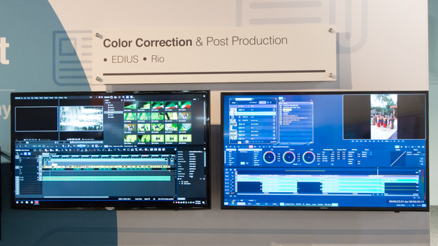 ブースでは、EDIUSとRioが並べて展示されていた