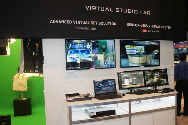 朋栄バーチャルスタジオのコーナーではセンサーレスバーチャルシステムVRCAM-NXやBrainstorm製のバーチャルシステムInfinitySet Liteなどを出展