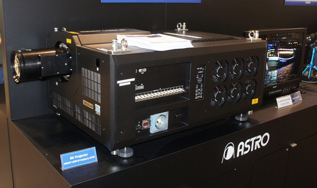8KレーザープロジェクターINSIGHT LASER 8K Imsging by ASTORO。Digital Progection社の技術を投入してアストロデザインが8Kプロジェクターとして完成させたもので、レザー光源と3つのDLPにより2500㏐という明るさとコントラスト比最大20000:1を実現。入力は3G-SDIx16または12G-SDIx4