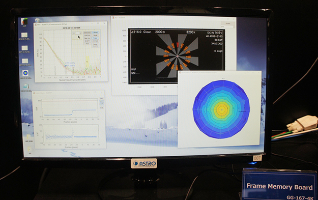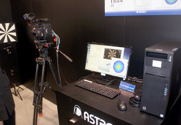 4K8Kのリーディングカンパニーといえるアストロデザインは、8K対応VR用カメラや、8Kプロジェクター、リアルタイムMTF測定装置、12G-SDI対応ジェネレーターなどのほか、ディープラーニングを活用したアップコンバーターなどを出展した。