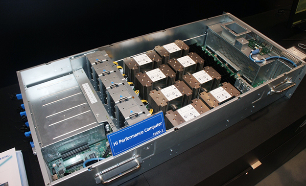 NVIDIAのGPUを並列化した画像処理用高速アクセサレーターHGX-1。8個のNVIDIA P100 GPUとNVLinkテクノロジーに複雑な画像処理を高速処理することができる。HGX-1を32台スタックすることでさらなる高速処理にも対応可能で、ディープラーニングを活用したアップコンバーターなどに応用可能