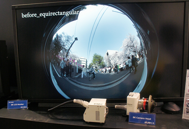 フィッシュアイカメラで撮影された画像は円形となっており、これを展開することでVR画像を生成する。VR画像に展開するとき円形画像の周辺部分は拡大されるが8Kで撮影されているので高品質な展開画像が得られる