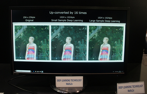 ディープラーニングを活用したアップコンバーターテクノロジー。アップコンバートでは走査線補完や画素の補完などが必要になり、そのアルゴリズムが画質を左右していたが、こうした補完にディープラーニングを活用することで高精度なアップコンバートを実現しようというもの。多くの演算が必要になるためアクセサレーターHGX-1などにより高速化を図っているという