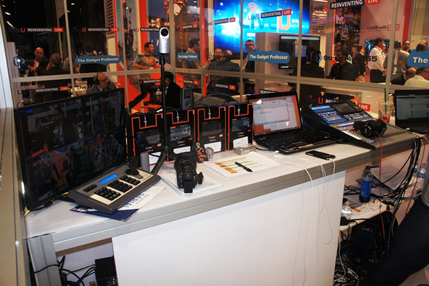 LiveUは新製品となる4K-SDIとGlobal Roaming機能を追加したソリューションLU600 HEVC 4K-SDIのほか、ラックマウントタイプのLU610HEVCや、HEVCとH.264コーデックとの比較、パケットロスが発生したときの画質比較などを披露したほか、ブース内にスタジオを設けLiveUのFacebook Liveでライブビデオ番組配信を行い、コンベンションセンターから生中継した。