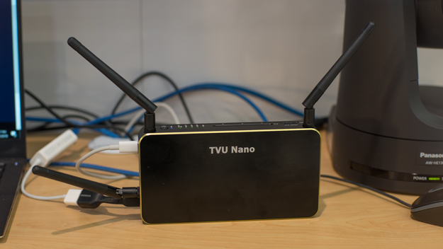 特長は、最大3つまでのSIMの搭載や、それに加えて2つの外付けのUSBポートを搭載し、最大5つまでのLTEや4Gネットワークに対応しているところだ。応用としては、ネットワークカメラのLANをTVU Nanoに繋ぐことで、より安定した高ビットレートのネットワークカメラのストリーミングができたり、プロダクション系の人がワイヤーキャストを使って現場で安定したストリーミングを行いたい場合に使用されるとのこと。