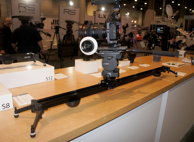 スライダーシステムLIBEC ALEX。写真のようなべた置きのほか、三脚と組み合わせたり、複数使用することで、様々な動きに対応可能