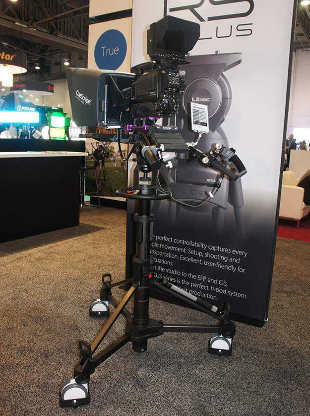 平和精機工業は三脚システムのラインナップとしてTH-XやRS+PLUS、RS、LXを出展したほか、ペデスタルやクレーンなど様々なカメラや撮影環境に対応したカメラサポートシステムを一堂に出展。
