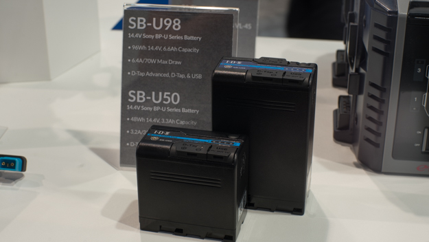 周辺機器用の「SB-U98」と「SB-U50」は、D-Tap出力1系統やUSB出力1系統、D-Tap Advancedを一個搭載。専用充電器VL-DT1を使用して充電することができる。