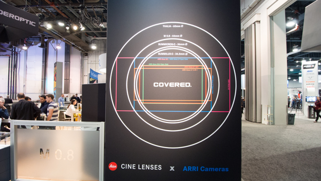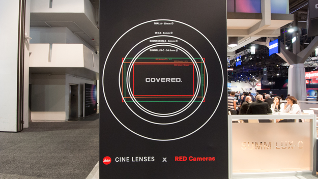 ブースで目を引いたのは、壁にCW Sonderopticのレンズのイメージサークルとあらゆるカメラのセンサーサイズが明記されていることだ。どのレンズがどのセンサーに対応しているのか一目瞭然でわかるようになっていた。