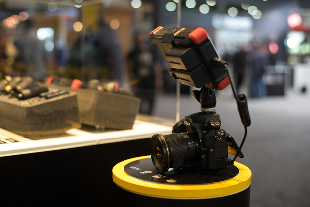 自動撮影ロボットの展示も大変な注目を浴びていた。MRMCと呼ばれる映画やテレビ、コマーシャルの特撮に特化したロボット制御ソリューションの製品で、2016年にニコンが買収した100%ニコンの子会社だ。ニコンは、カメラマンが撮影できないようなところから撮りたいというニーズを実現するために買収したという。