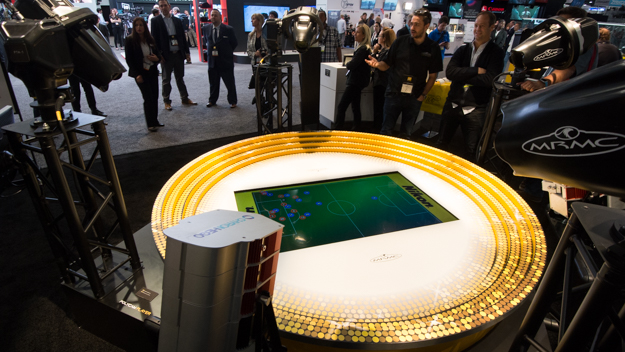 もう1つが「Polycam:Player」で、ステレオカメラでサッカープレーヤーの位置情報を認知して、それに従ってロボティックポットと呼ばれているロボットが自動追尾するというソリューション。ロボティックポットの中にはニコンのD5が入っている。