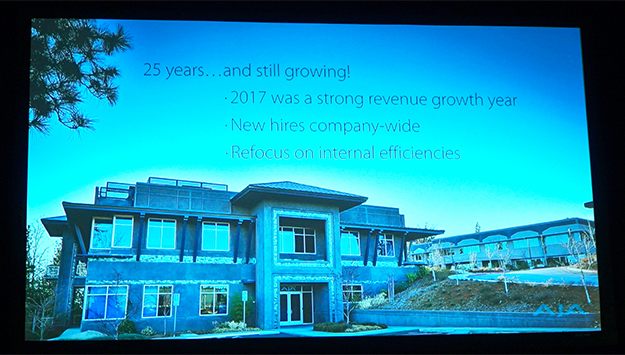Bryce Button氏:AJAは今年で25年を迎えますが、創業当初から最新のテクノロジーを取り入れつつ、ユーザーの皆様に有用で喜ばれる製品を提供し続けています。最近のトレンドとして4KやHDR、IPがありますが、AJAでは既にこうしたトレンドに適合した製品を発売しています。今回もNABでいくつかの新製品を発表させていただきましたので、そのいくつかを紹介させていただきます。