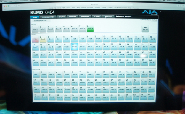 12G-SDI対応ルーターKUMOの設定画面。各チャンネルのアサインなどがWebブラウザ上で行うことができる