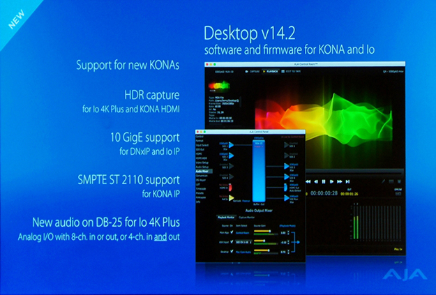 AJAの入出力デバイスと共に使用するDesktop Softwareの最新バージョンv14.2では、KONA HDMIおよびKONA 1へのサポートのほか、KONA IP用のSMPTE ST 2110 IPビデオモードが新たに追加となった
