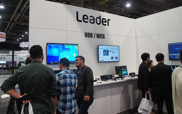 リーダー電子はZENシリーズのHDR対応波形モニターLV5600やLV5300などを出展。HDR信号のレベル監視やOOTFを考慮したディスプレイにおける想定輝度(cd/m2)でのレベル管理が可能
