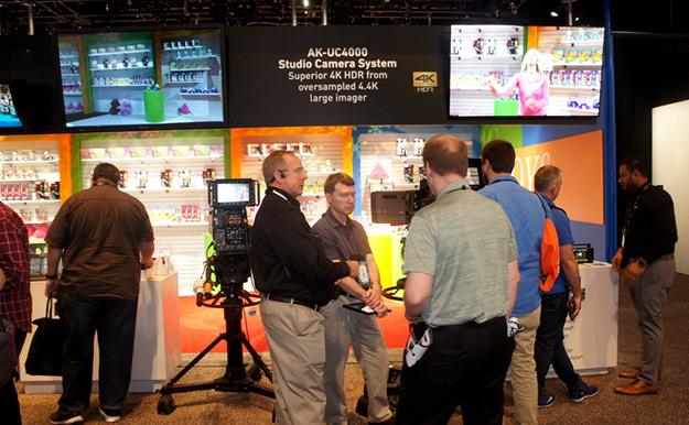 パナソニックはシネマカメラレコーダーVARICAMや、コンパクトシネマカメラAU-EVA1のほか、4KスタジオカメラAK-UC4000などHDR対応のカメラやプロジェクターを展示。