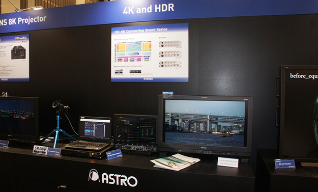 アストロデザインは撮影、編集、上映など映像制作フロー上で必要となる機器や測定器をユーザーのニーズに答え多数そろえている。HDR映像制作に必要なカメラやレコーダー、モニターなど様々な製品があるが同社が得意とする分野の一つであるコンバーターの新製品として4KコンバーターボードSB-4024を出展した。