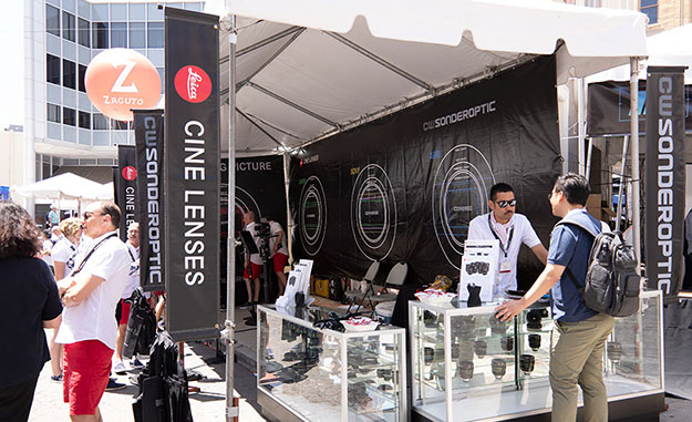 CW SONDEROPTICブースでは、Leica Cine lenseの展示を行っていた。ハリウッドやカンヌで定番のSummilux-CやSummicron-Cだけで無く、大判センサー向けのLeica Thaliaシリーズまでもが各メーカーのカメラと共に実レンズ展示してあり、多くの関係者の注目を集めていた。