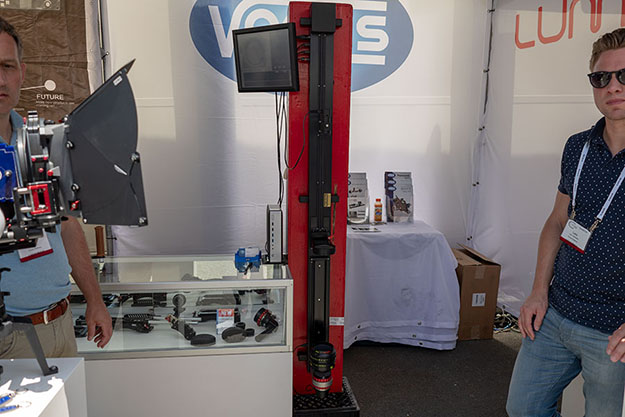 Cine Gearでは、日本ではなかなか見られない映画専門の機材が多数見られるのも面白いところだ。筆者が注目したのは、Vocas Systemsブース。日本ではRIGの専門豪奢で知られる同社のブースでは、LumaCon linear collimatorが展示発表されており、これが驚異的な製品だったのだ。
