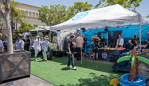 筆者も愛用するストレージメーカーG-Technologyのブースでは、麦わら帽子と飲み物を配っていた そして始まるストレージ談義が最高だった!Thunderbolt 3のフルスペックを屋外運用で出す方法について熱く語れるイベントが他にあるだろうか!?