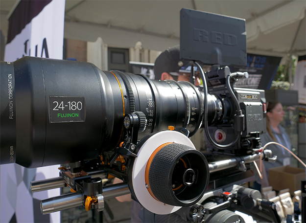 Duclos Lenses社自身のブースでは、RED MONSTROセンサーとの組み合わせで展示。モニターを見ながら画質の状態などを確認出来た。FUJINON HK24-180との組み合わせでは、筆者の主観ながら1Stop程絞れば周辺も良好で、ベース感度の上がった現在のデジタルシネマカメラならではの使い方だと感じた。8K FFで運用したい場合にレンズの選択肢が大きく広がる事は大変好ましい。