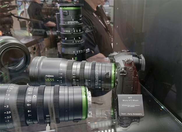 EマウントとXマウントで使用経験のあるMKズームレンスは、サードパーティ製品ながらm4/3マウントに改造した物が展示してあった。昨年FS5を導入し、今年GH5を追加導入した筆者としては、FS5とGH5でレンズが共用出来る事を考えれば、合わせて導入の価値有りと見た。バックフォーカス調整の出来るMKレンズだからこそ、ユーザー自身で交換出来るサードパーティアイテムが生きるという物。
