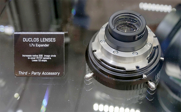 各社から出揃ったOver Full 35mmセンサーカメラ。その対応を謳うレンズ群も数多く展示されいたので、新規導入を検討するレンタハウスなども多い事と思う。そんな中、アイデア商品とも言えるのが、FUJIFILMブースでも見かけたDuclos Lenses社のPL to PLマウントの1.7x Expander。