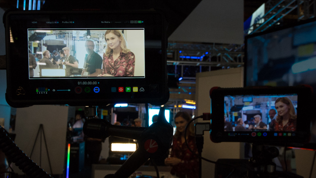 新バージョンは、クワッドISOレコーディングやオンスクリーン選択可能な出力切り替え、パナソニックのAU-EVA1で最大30fpsでの5.7k ProRes RAWレコーディングを実現。EVA1とATOMOSのレコーダーの組み合わせによって、解像度とコストパフォーマンスを備えた環境を提供できるとアピールしていた。