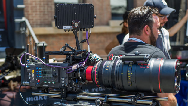 こちらは、ズームレンズ「HK4.7×18」とソニーのラージセンサーカメラ「VENICE」を組み合わせたデモ。「HK4.7×18」はスーパー35mmセンサー対応でPLマウントのレンズだが、Duclos Lensesの「Duclos 1.7x Expander」を組み合わせることでフルサイズ撮影が可能になる。