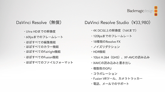 ――DaVinci Resolveの無償版と税別33,980円のStudio版の違いを教えてください