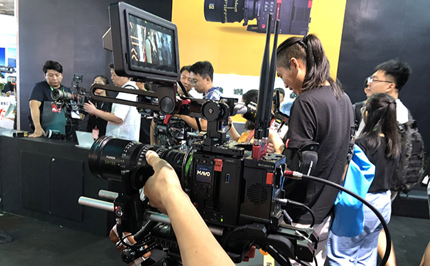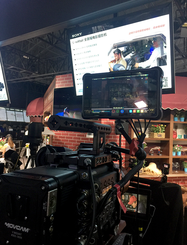 やはり新製品の4Kハンドヘルドの人気は高い。今年は来場者数が若干低めの様に感じたがこのブースはそれを感じさせない程だ。もう一つ特徴的なのはこちらの展示時に小さい別ブースで少人数(またはワンマンOP)で運用できるスイッチャーシステムがある。昨年はMCX-500を中心としたものだったが、今年は更に一歩進んでリモコンカメラを制御させていた。もちろんシネマカメラのVENICEも展示。ただし中国圏では製品名がVENICEではなくCINE ALTA-Vという名称になっている。