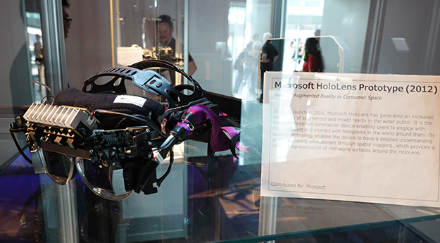 VRビレッジ入り口に展示されたMicrosoft HoloLens開発当時のプロトタイプ
