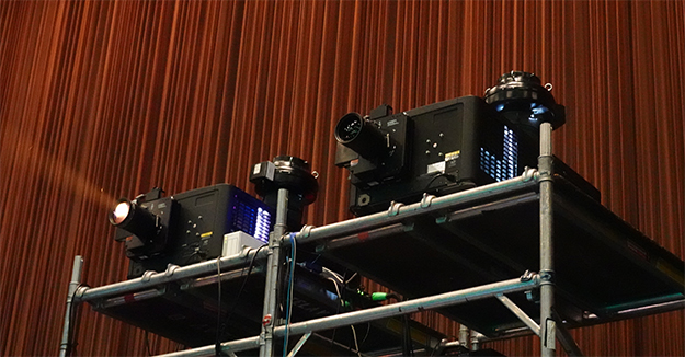 上映には昨年に続きSIGGRAPHの機材スポンサーであるクリスティデジタルの最高峰のプロジェクターChristie CP4230 3DLP(34,000ルーメン)プロジェクターと、4K映像に関してはChristie Boxer 4K30(30,000ルーメン)が用いられた。