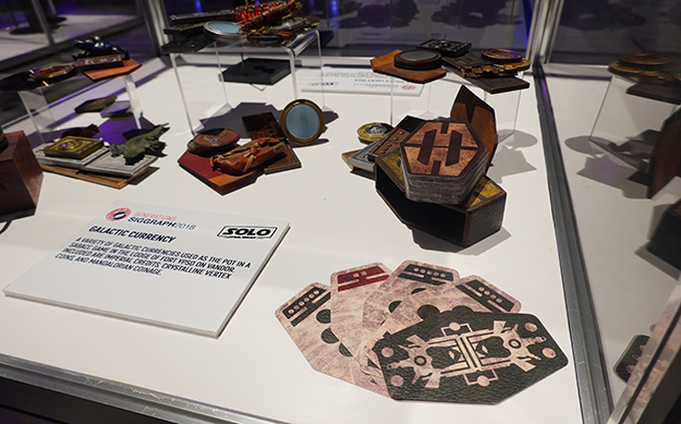 映画「ハン・ソロ」で出て来た小道具。ハン・ソロが持っていた幸運のダイス、賭け用の六角形トランプなど