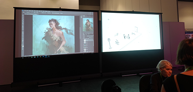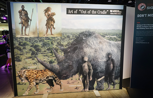 スクウェア・エニックスとLuminous Productionsが手がけた「生命礼讚 -Out of the Cradle-」のコンセプトアート、制作のリファレンスとなった小道具の紹介。ライブドローイングも実施された