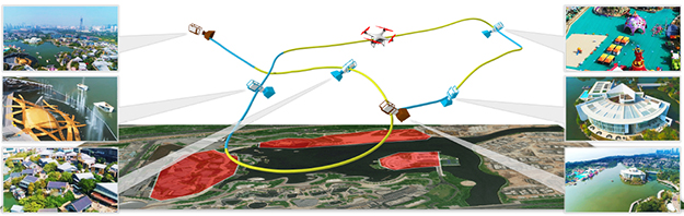 ドローンによる撮影の際、ビデオフッテージの撮影を最適化する方法。地図から指定して撮影することができる。地形にあわせて、なめらかなカメラの動きを検討、設定するための補助ツールとしての役割を果たす。ドローンの動きだけではどのような映像が撮影できるのか経験や雰囲気でしかわからないため、それらを初心者ドローン撮影者にとっても大規模な屋外シーンの撮影ができるようにする工夫。