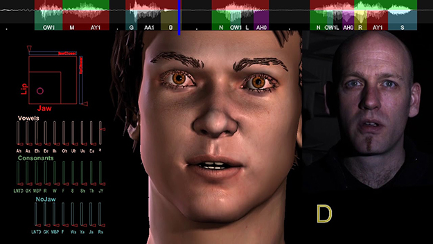 トロント大学他の研究。音声データが先にあり、それに合わせてCGキャラクターアニメーションの顔や口の動きを合わせる技術。日本のアニメ製作の手順としては一部を覗き、先にアニメーションが作成されたのち声優が口パクにあわせてセリフをあてる作業を行うが、ハリウッド系のフルCG映画の場合は、俳優が声優が先に声の演技を収録してから、それにあわせて口や顔のアニメーションを完成させる場合が多い。そういった手順のためニーズ先行で研究開発されている技術。VTuberの口や顔の動きにも応用できるかもしれない。