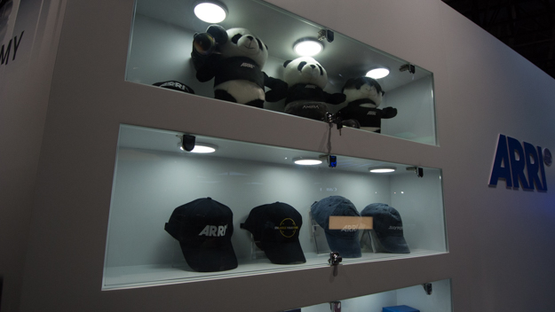 ブース内に購入することができるグッズコーナーはNABやCine Gearでは見られないコーナーだ。Tシャツの種類が豊富で、もっとも売れているTシャツは「ALEXA 65」だという。変わったものでは「SkyPanel」のTシャツなどもあって、幅広く取り揃えていた。ARRIのぬいぐるみがパンダのわけは、「パンダは中国のシンボルだから」とのこと。パンダが抱えるカメラはAMIRAだ。