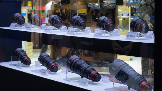 新しく「CN-E20mm」をラインナップしたシネマレンズの展示