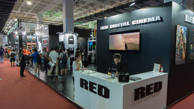 REDのカメラは中国でも大人気で、DSMC2 MONSTRO 8K VV、HELIUM 8K S35、GEMINI 5K S35などのDSMC2のラインナップを展示していた。その中でもデュアルISOモード搭載で、スタンダードのベース感度はISO800、ローライトはISO3200を基準としているGEMINI 5K S35に注目が集まっていた。ISO6400でも画質は安定していると言われていて、暗いシーンでも対応しやすいのが特徴だ。ブース内に暗部での撮影が体験できるコーナーが設けられていて、このローライトモードの効果を試せるようになっていた。