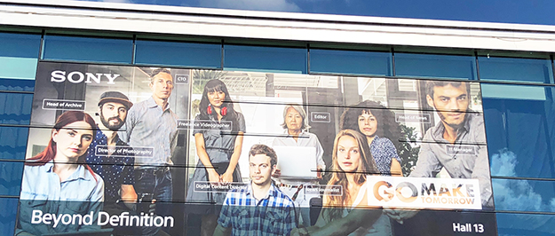 エントランスに各社には多くのアドボードが掲げられるが、なかでもSonyの今年のテーマ“GO MAKE TOMORROW”と打ち出したものがそれを物語るといっても良いだろう。
