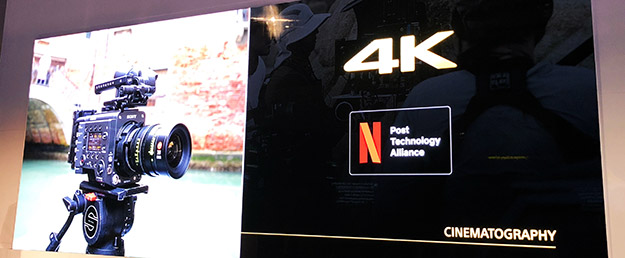 VENICは、NetFlix Post Technology Alliance(NPTA)に認定。NETFLIXコンテンツ制作はこのNPTAがないと制作ができない。このスライドも象徴的だ