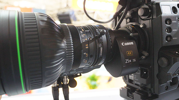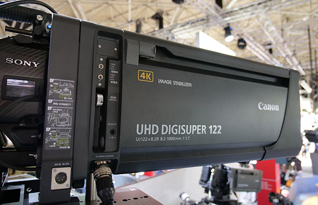 Canonから4K放送用フィールドレンズUHD-DIGISUPER 122/111、4K放送用ポータブルレンズCJ25e×7.6Bが発表された。UHD-DIGISUPER 122は引きは8.2mmからテレ端1000mmと驚異の高倍率ズームとなっている。