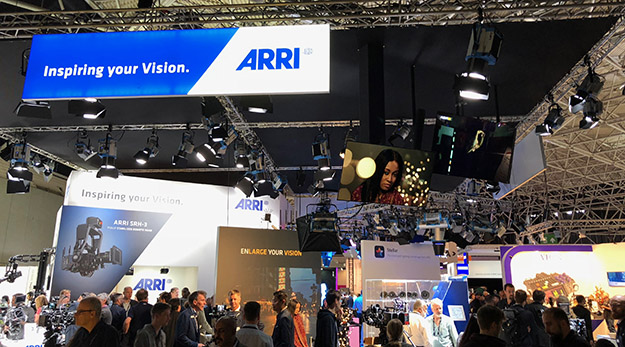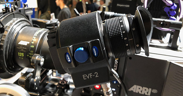 ARRIブースではALEXA LF 3.0バージョンが展示されていた。新たなバージョンではビューファーのバージョンが上がりEVF-2となった。EVFー2では表示パネルがフルHDとなり視認性の向上が図られている。具体的にはコントラストが上がり明るさも向上している。