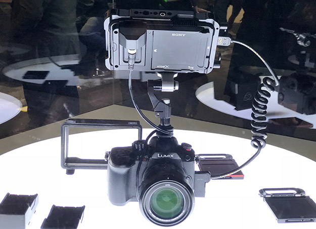 NABで発表されていたNINJA V(ファイブ)の最終形態に近い動作品が展示されていた。NINJA Vは、5.2インチ1,000nit 4K60PのHDR記録再生可能なモニターレコーダー。HDMI2.0に対応した入出力を装備している。