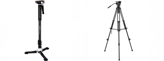 左から自立式一脚セット「HFMP AP KIT」、エントリー三脚「TH-X」