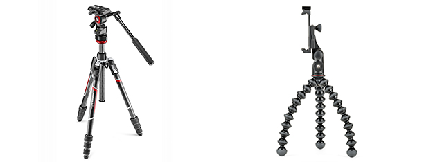 左から「befreeアドバンスカーボンT三脚キット」、「グリップタイトPRO2ゴリラポッド」