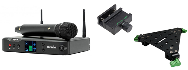 左からRODE社のセットにした「Performer Kit」、9.SOLUTIONSの「コールドシュークランプ」と「チーズプレート」
